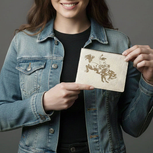 American Darling Hair-On Leather Engraved Wallet - Saddle Bronc