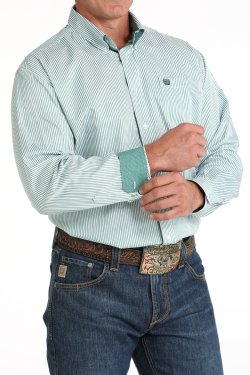 Men's Cinch Stripe Button-Down Western Shirt - Green/White
