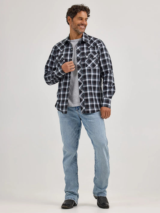 Men's Wrangler Wrinkle Resist Long Sleeve Western Snap Plaid Shirt
