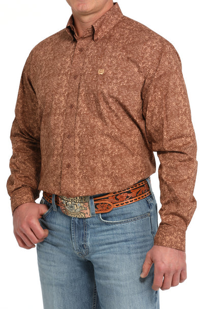 Men's Cinch Brown Print Button Down Long Sleeve Shirt