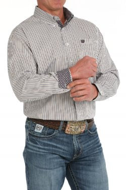 Men's Cinch Striped Button-Down Western Shirt - White Tencel