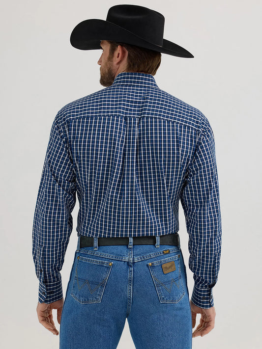 Men's Wrangler George Strait Long Sleeve Button Down - Deep Sea Plaid