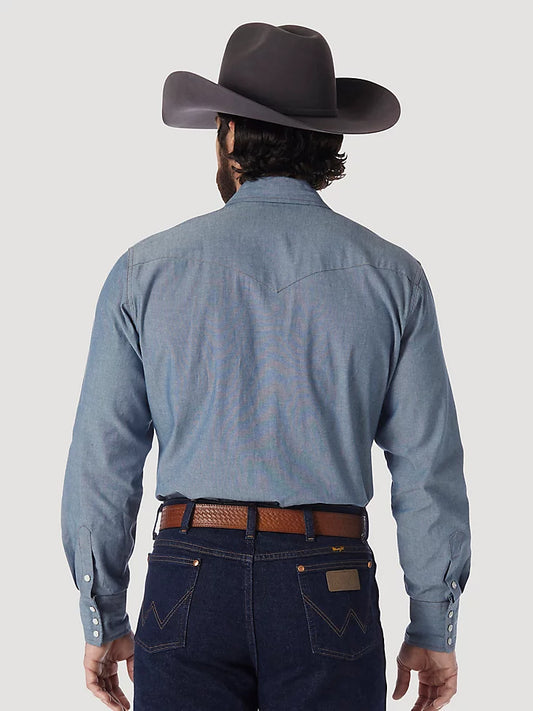Men's Wrangler Cowboy Cut® Work Western Indigo Chambray Long Sleeve Shirt