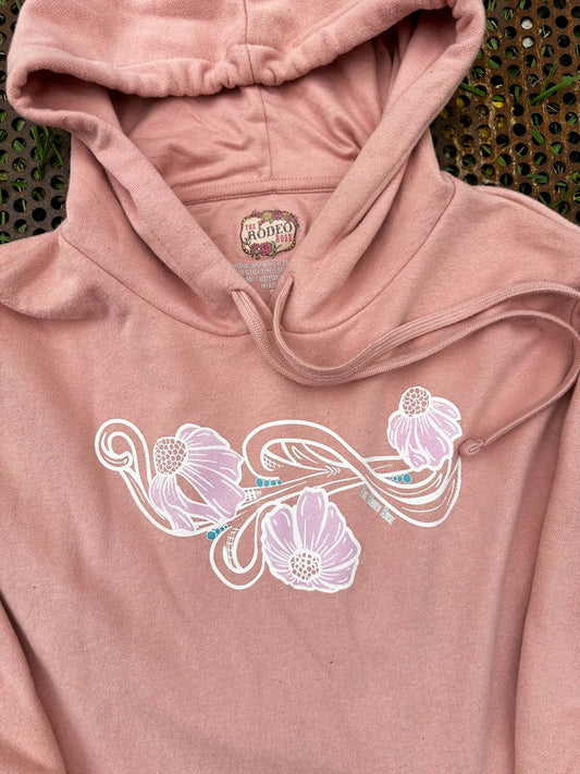 The Rodeo Rose Coneflower crop hooded sweatshirt-soft pink