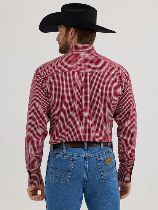 Men's Wrangler George Strait Long Sleeve Button Down - Carmine Plaid