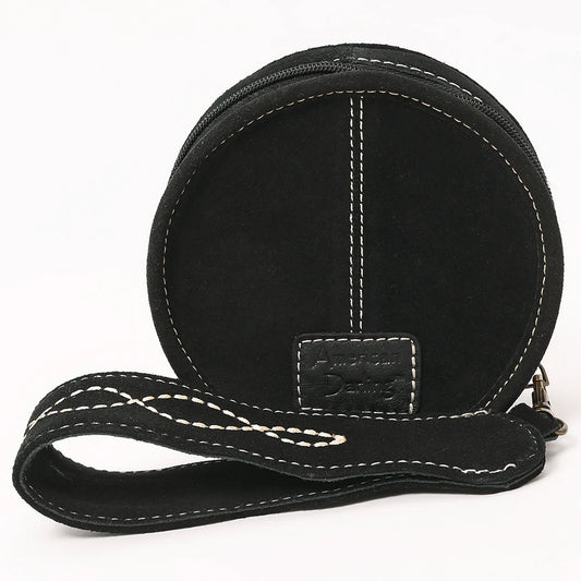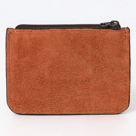 American Darling Tan Suede Card Holder with White Embroidery and Zip Closure