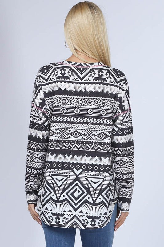 Regular price $ 29.98 USDRegular priceUnit price perSale price $ 29.98 USDWomen's Aztec Print V Neck Long Sleeve Top
