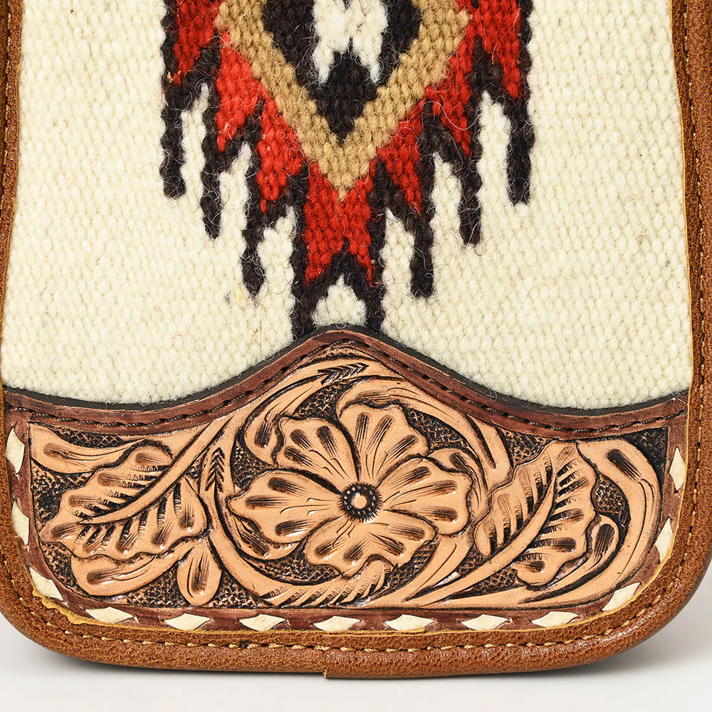 American Darling is a proud Official Designer Sponsors of New York Fashion Week 2024. Detailed Hand tooled, carved and finally antique hand finished exquisitely done by the finest artists and craftsmen in the country. Vegetable tanned American Genuine Cowhide Leather. A meticulously hand weaved wool saddle blanket giving it a western traditional yet trendy and elegant look. High quality Genuine Full Grain Leather. Soft and supple leather that ages beautifully as it wears. Adjustable genuine leather shoulder strap. Genuine YKK brand known for long lasting and durable zipper closures ensure security of your essentials.