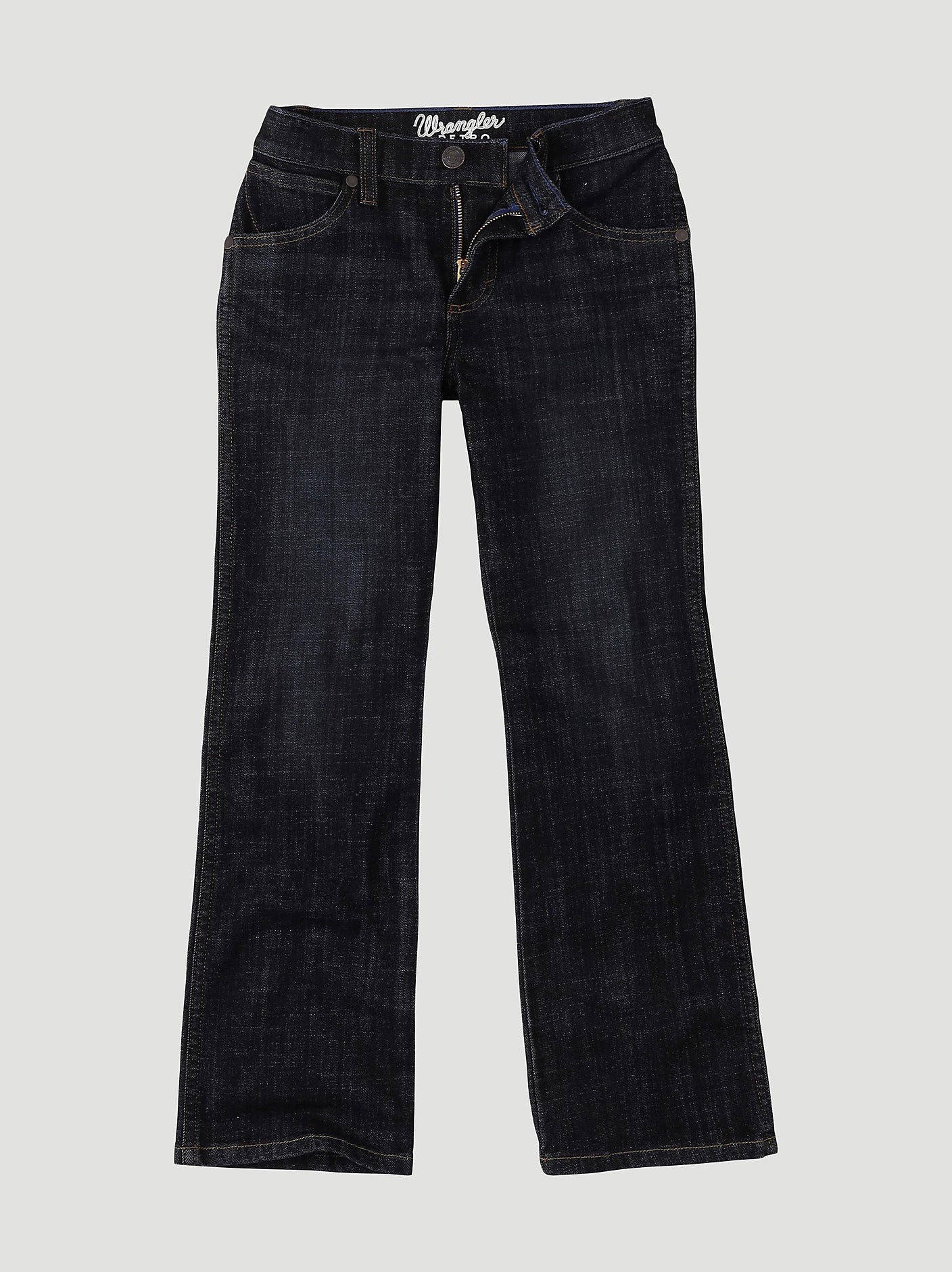 He'll never want to wear another pair of jeans. Our Boy's Wrangler Retro® Slim Boot Jean takes our classic Western styling with an adjust-to-fit waistband that grows with him. These bootcut jeans sit lower on the waist, fit slim through the thigh, and leave plenty of room for his boots. Plus, they're crafted from cotton with just a hint of stretch for extra comfort.