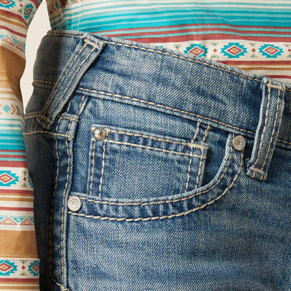 A versatile, easy-to-wear jean that goes from school to the barn and everywhere in between. Laser detailing on the back pockets adds iconic Ariat style.