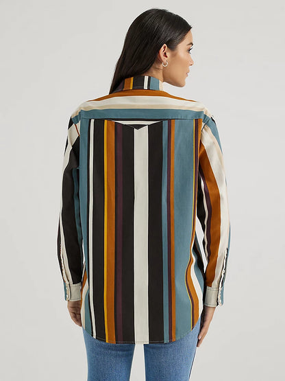 Women's Wrangler Brushpopper Stripe Cowboy Retro Snap Western Shirt - Multicolor