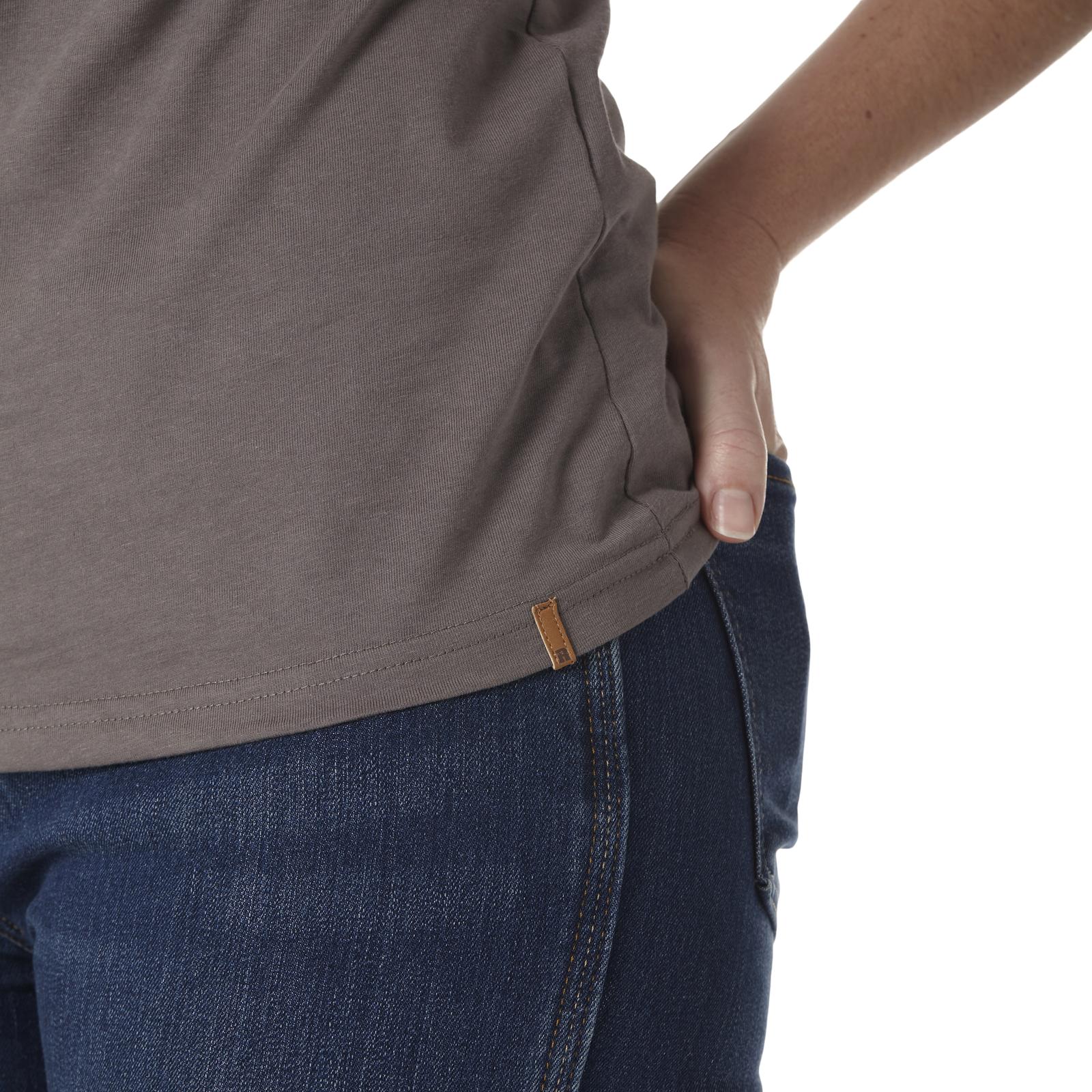 From staining the deck to cleaning up the leaves in your yard, the women's Wrangler® RIGGS Workwear® Performance Short-Sleeve T-Shirt for Ladies makes it easy to tackle projects both big and small. This everyday performance tee features a relaxed fit for greater range of motion and a longer length for full coverage. This Wrangler t-shirt also features a ribbed collar, the RIGGS Workwear label on the left sleeve, and breathable performance fabric construction with moisture-wicking properties to keep you comfortable when you start working up a sweat.